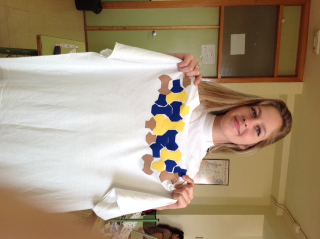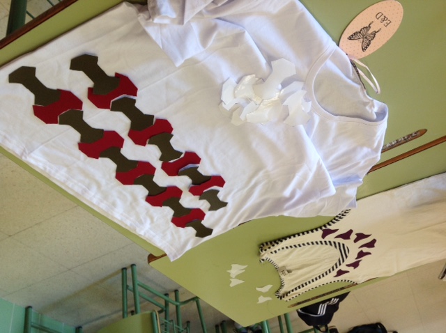 Entre las actividades realizadas queremos destacar una asociada al diseño, descripción y reconocimiento de sus mosaicos. Tras construir en papel los principales baldosas árabes presentes en la Alhambra, el hueso nazarí, la pajarita y el avión, los hemos llevado a parches adhesivos y luego a nuestras camisetas. De esta forma hemos visto la Alhambra y las matemáticas desde otro punto de vista, el geométrico, a la vez que se ha desarrollado la creatividad y se han ampliado los conocimientos matemáticos de nuestros alumnos y alumnas.