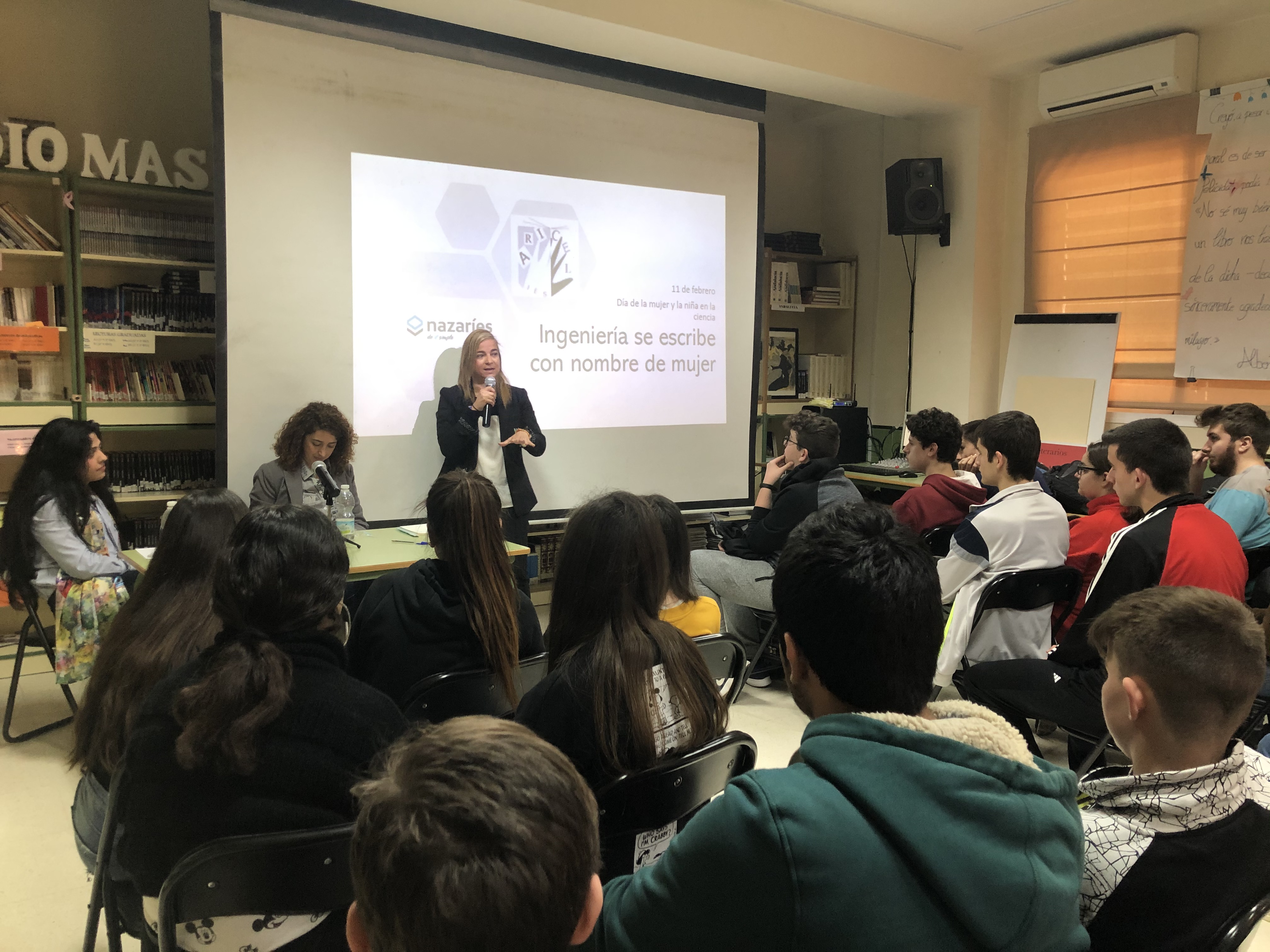 Aunque es realidad que la presencia de mujeres en carreras científicas o en ingenierías sigue siendo inferior a la de los hombres, el pasado 11 de febrero tres jóvenes ingenieras Raquel Marín, Rocío Galindo y Kenza Hazeb que trabajan en la empresa granadina Nazaríes IT nos visitaron y protagonizaron un Encuentro Científico en la Biblioteca “Jose Redondo”. Esta actividad, organizada por el Departamento de Matemáticas, fue programada con motivo del Día de la Mujer y la Niña en la Ciencia para fomentar las vocaciones científicas, matemáticas y tecnológicas en nuestras estudiantes.
