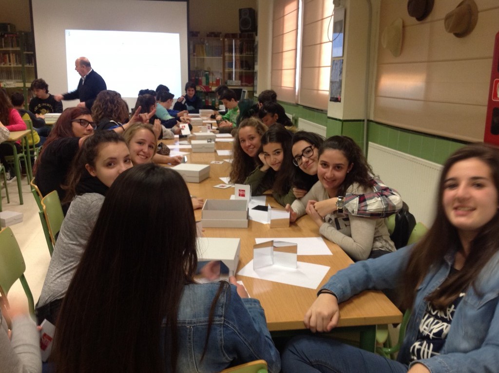 El 15 de abril el profesor Luis Berenguer Cruz impartió OTRA CLASE DE MATEMÁTICAS. Un taller inspirador que no sólo abarcó habilidades geométricas y de inteligencia espacial, sino que además alimentó la creatividad. Por la biblioteca “Jose Redondo” desfilaron todos los alumnos de 3º de ESO, chicos y chicas que disfrutaron con la manipulación directa de las matemáticas y que mostraron gran interés y una participación activa.